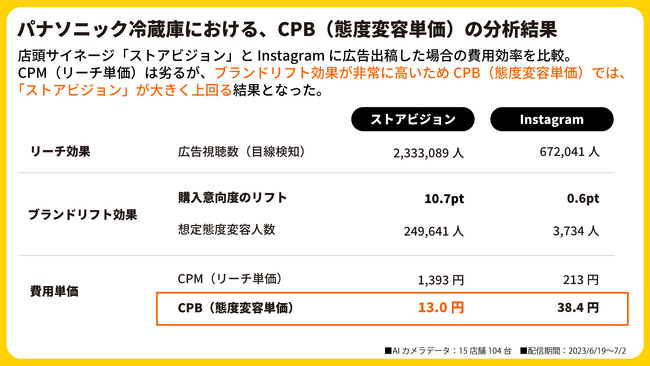 CPB(態度変容単価)はSNS広告の1/3!非食品分野であるパナソニック冷蔵庫のプロモーションでも店頭サイネージ広告の優位性が明らかに。