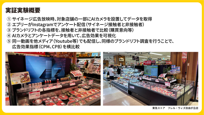 そこで、全国のスーパーマーケット2,300店舗以上で、約7,000台の店頭サイネージを運営している『DELISH KITCHEN』では、量と質を掛け合わせた“ブランドリフトのコスト効率”を可視化することで、店頭モーメントならではの価値を証明できるCPB算出の実証実験を実施しています。