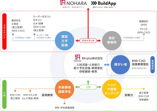 野原グループ株式会社は、BIM設計-製造-施工支援プラットフォーム「BuildApp(ビルドアップ)」で主に施工の生産性向上を実現すべく開発を強化しており、このたび、建設産業の人手不足や建設関連企業内のBIM人材不足への解決策の一つとして、建設・BIM人材の派遣・紹介事業 も本格化させます。