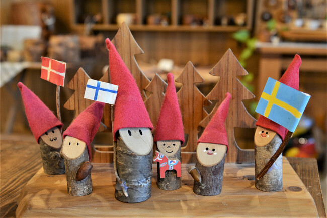 ヘルシンキの職人が手作りしたトントゥなど北欧アイテムがずらり。