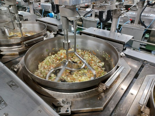 ●既存の製造ラインでは、炒め調理やバットで具材を混ぜる工程等、人が行っていた作業を
