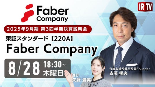 株式会社Faber Company(ファベルカンパニー/本社:東京都港区、代表取締役:稲次正樹、古澤暢央、以下「当社」)の代表取締役執行役員Founder古澤暢央が、IR Robotics主催の「2025年9月期 第3四半期決算説明会」に参加することとなりましたので、下記の通りお知らせいたします。