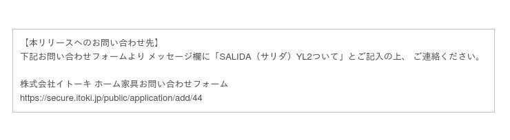株式会社イトーキ(本社:東京都中央区 社長:湊宏司)は、コンパクトなサイズで在宅ワーカーに人気のSALIDA(サリダ)YL2に2種類の新色を5月11日に追加発売いたします。新色は『sakurairo/桜色』と『minamoiro/水面色』。どちらも自然からインスピレーションを受けた優しい印象の「くすみパステルカラー」でホワイトフレームとの相性抜群です。
