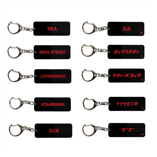 黒地に赤でジャンル名を刻んだミニマルなデザイン。主張しすぎないサイズ感と質感で、鍵やバッグにそっと添えるだけで、音楽と一緒にいる感覚を楽しめます。