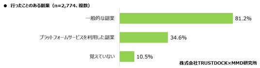 副業経験があると回答した2,774人を対象に、行ったことのある副業を聞いたところ(複数回答可)、プラットフォームサービスを利用した副業経験があるのは34.6%となった。