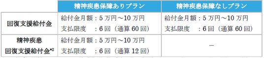 *2 保障の開始まで、3か月の免責期間(保障されない期間)があります。また、精神疾患回復支援給付金の給付金月額は回復支援給付金と同額となります。