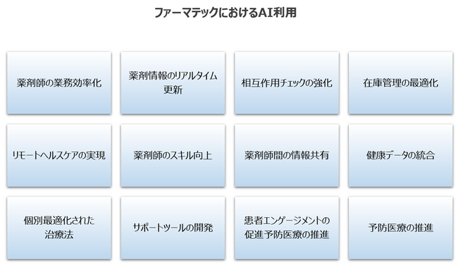 これらの分野におけるファーマテックの活用は、薬局業界における課題の解決と業務の効率化、さらには患者ケアの向上に貢献することが期待されています。ファーマテックの進化により、薬剤師の役割がより重要かつ多様化し、薬局がより効果的に医療サービスを提供できるようになります。