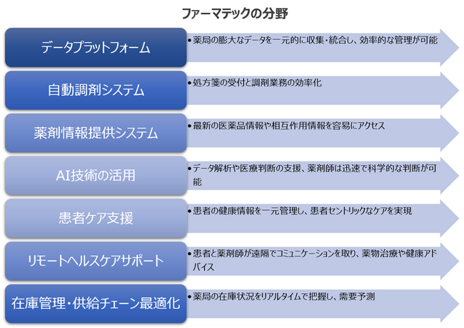 これらの背景から、ファーマテックは薬剤師、薬局スタッフ、患者、医療機関がデジタルテクノロジーを活用して医療の質を向上させるための重要な手段として注目を集めています。