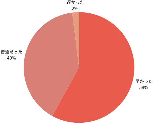 レイクの審査のスピードが「早かった」と回答した人が58%で最も多く、「遅かった」と答えた人は2%に留まった。