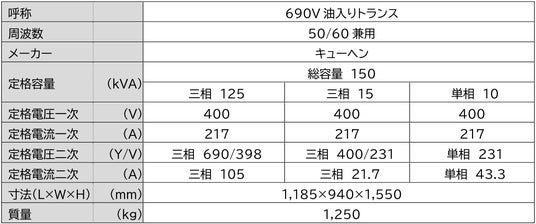 ■「三相7線油入りトランス」特長