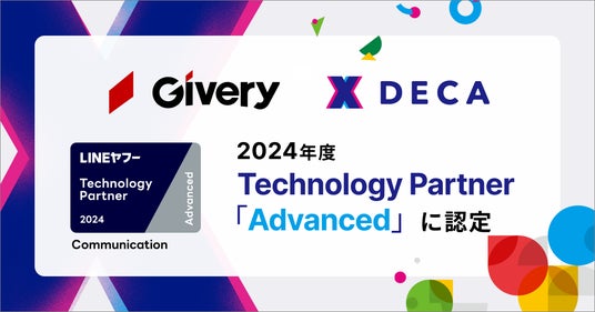 AI×マーケティングDX支援サービス「DECA(デカ)」及び、LINEマーケティングトータル支援サービス「DECA for LINE(デカ・フォーライン)」を提供する株式会社ギブリー(本社:東京都渋谷区、代表取締役:井手高志、以下当社)は、LINEヤフー株式会社(本社:東京都千代田区、代表取締役社長:出澤 剛)が提供するマーケティングソリューションの導入ならび支援など各領域に特化したパートナーを認定する「LINEヤフー Partner Program」において、2024年度の「Technology Partner」のコミュニケーション部門「Advanced」に認定されました。