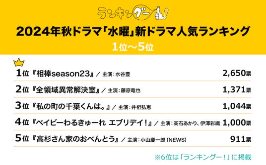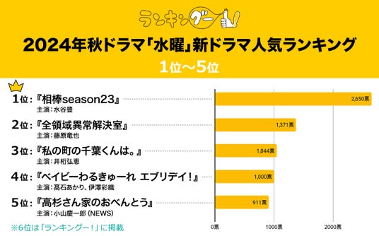 ◆2024年秋ドラマ「水曜」新ドラマ人気ランキング TOP5抜粋