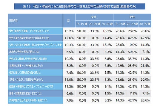 ・「災害時にプライバシー・安全に不安を感じる」 女性47.5%/男性23.4%
