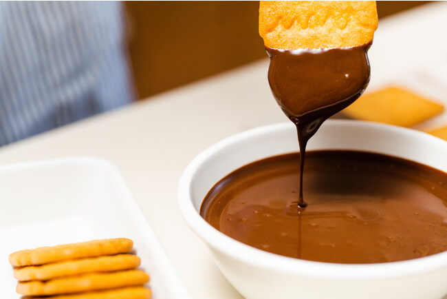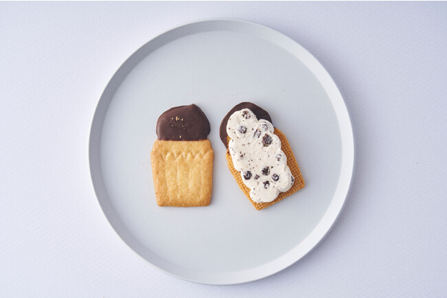 生クリーム入りのバタークリームに紅茶漬けのレーズンを合わせ、ダークチョコレートをかけたビスケットで挟みました。冷んやりとろけるクリームにフルーティーな紅茶レーズンが相まって、まるでミルクティーのような味わい。リピートしたくなるおいしさに評判があり、発売以来大人気のお菓子です。