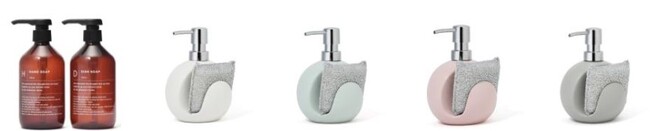 ディスペンサー全面がスポンジ置きになったコンパクトなキッチンでも場所を取らない陶器製のディスペンサーです。