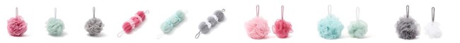 幾重にも重なったメッシュが、空気をたっぷり含んだふんわり泡をつくってくれる泡立てパフシリーズです。ボディ用、背中用、フェイス用と部位によってお選びいただけます。