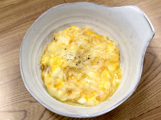 〆は、ごはんを入れてリゾット風にして食べるのがオススメ!チーズと卵を入れればマイルドで濃厚な味わいに。