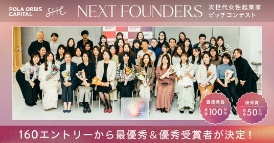 学ぶから働くまでを支援する女性向けキャリアスクール「SHElikes(シーライクス)」を運営するSHE株式会社(所在地:東京都港区、代表取締役CEO/CCO:福田恵里、以下SHE)と株式会社ポーラ・オルビスホールディングス(本社:東京都中央区 社長:横手喜一、以下「ポーラ・オルビスホールディングス」)は、共同で実施する女性次世代起業家輩出プロジェクト「NEXT FOUNDERS」において、160エントリーのビジネスアイデアから最優秀賞・優秀賞を決定しました。最優秀賞には100万円、優秀賞には50万円の賞金、そしてファイナリスト10名全員にインキュベーション施設「Overlap」1年間無償利用権が、起業支援として授与されました。