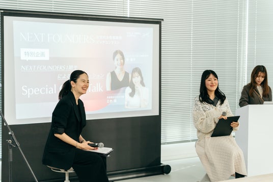 また当日は、昨年NEXT FOUNDERS1期生としてプログラムに参加し、実際に起業した1期生によるトークセッションやサービス展示、参加者同士の交流会も実施されました。登壇者同士が健闘を讃え合い、参加者との情報交換によるネットワーク作りなど、起業に向けた更なる一歩や成長につながるコミュニティとしての側面がより強化される時間となりました。