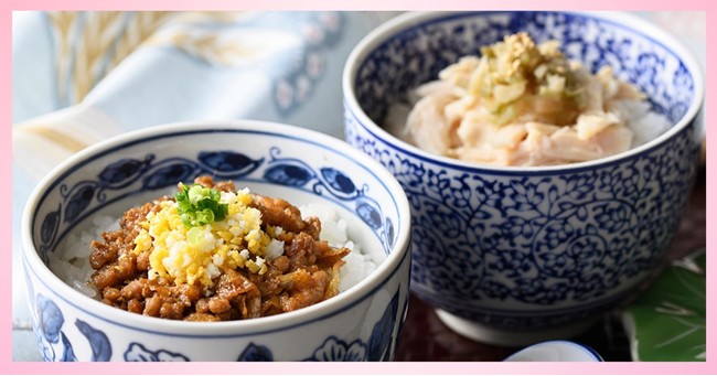 台湾屋台飯の大定番!八角香る甘辛豚挽肉が決め手の『魯肉飯(ルーローハン)』と、さっぱりとした蒸し鶏のほぐしにコクのある旨みたっぷりのたれをかけた『鶏肉飯(ジーローハン)』。