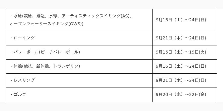 【実施競技・大会会期】