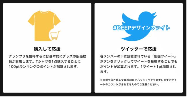 このイベントでは、各選手がオリジナルデザインのグッズを販売し、販売枚数と応援ツイート数のポイントを合計してグランプリを決めます。