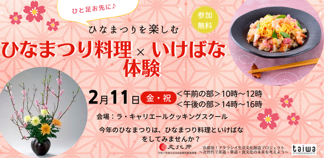 【その2.(食×華道)】イベント名:ひと足早くひなまつりを楽しむ、ひなまつり料理×いけばな体験