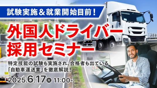 よりオンラインセミナー『試験実施&就業開始目前!「外国人ドライバー採用セミナー」』を開催いたします。