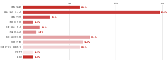 今、一番嫌いな家事は・・・ダントツで、「風呂・トイレの掃除」 次いで「料理の献立考える」こと ~この背景には、便利家電の普及が影響しているかも~