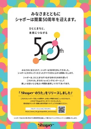 シャポーは街の玄関口の「駅」に直結し、地域のお客さまに支えられ、街とともに成長し続けてまいりました。ご愛顧への感謝を込め、2022年4月から2023年3月の1年を通じ、様々な50周年特別企画を展開してまいります。