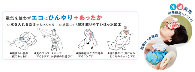 水と氷を入れるだけでひんやり冷たいエコアイテム。