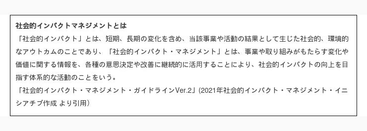 1.社会的インパクト評価により、事業が生み出す社会的価値を可視化し、検証すること