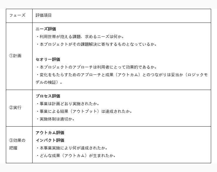 支援を行うだけではなく、社会的な効果や価値を評価し、事業改善に活かす