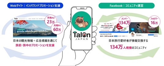 インバウンド・バズが運営する「Talon Japan」(https://www.talonjapan.com/)は、日本の情報を紹介するタイ語のWebサイト運営と、日本や日本旅行に高い関心を持つタイ人134万人以上(2026年3月時点)のコミュニティを有するFacebookグループ運営事業をしており、日々多くのタイ人に向けて、日本の観光スポットや旅に役立つ情報などを発信しています。インバウンド・バズは、「Talon Japan」のコミュニティ運営において、タイからの観光客を誘致したい日系企業や地方自治体の魅力を広告掲載などで情報発信し、インバウンドプロモーション支援を行っております。