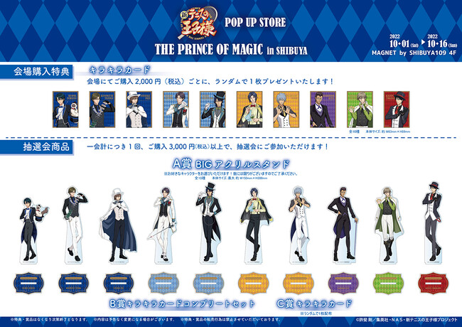 株式会社バンダイナムコフィルムワークスは、『新テニスの王子様』よりPOP UP STORE "THE PRINCE OF MAGIC in SHIBUYA"を、MAGNET by SHIBUYA109 4階イベントスペースにて、2022年10月1日(土)より10月16日(日)までの期間限定で開催いたします。