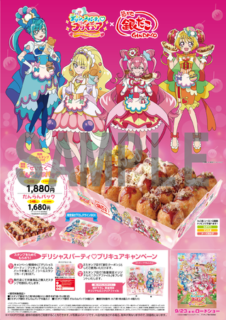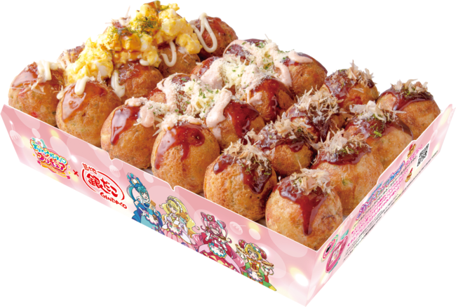 今回のコラボ商品は、当コラボ限定の描き下ろしで、たこ焼やたい焼を楽しむデリシャスパーティ(ハート)プリキュアの姿がデザインされたお持ち帰り専用の特別パックです。テーブルを華やかに彩り、“ぜったいうまい!!たこ焼” と “クロワッサンたい焼” で 「笑顔いっぱいの楽しい食卓」 をより一層盛り上げます!