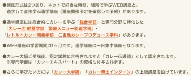 カレーを体系的かつ実践的に学ぶことができ、カレーを理解する必要不可欠な知識全般を習得します。単なる知識としてだけでなく、ビジネスや家庭で実用的に実践できる「生きた学問」として学ぶことを目指しています。