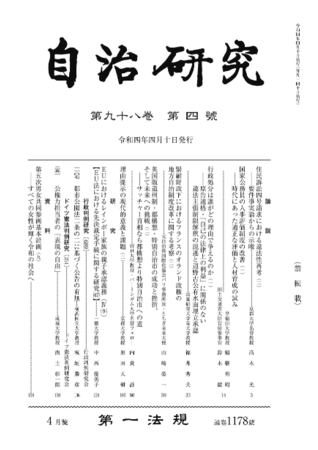 法律関連出版物、各種データベースを提供する第一法規株式会社(所在地:東京都港区、代表取締役社長:田中 英弥)は、『自治研究4月号』を3月28日に発刊しました。