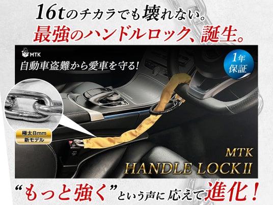 アタラシイものや体験の応援購入サービス「Makuake」にて目標金額の2340%を達成した、車両盗難防止用ギア「ハンドルロック2 MTK-HL8」を、楽天市場にて販売を開始いたします。