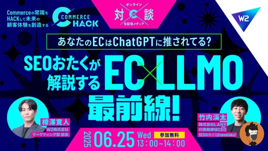 デジタルマーケティング支援を提供する株式会社LANY(東京都渋谷区、代表取締役社長:竹内渓太、以下「LANY」)は、W2株式会社が運営する映像メディア「Commerce Hack」による無料リアルタイム配信「SEOおたくが解説するEC×LLMO最前線!あなたのEC、ChatGPTに推されてる?(W2 Commerce HACK×LANY)」に、2025年6月25日(水)に出演いたします。