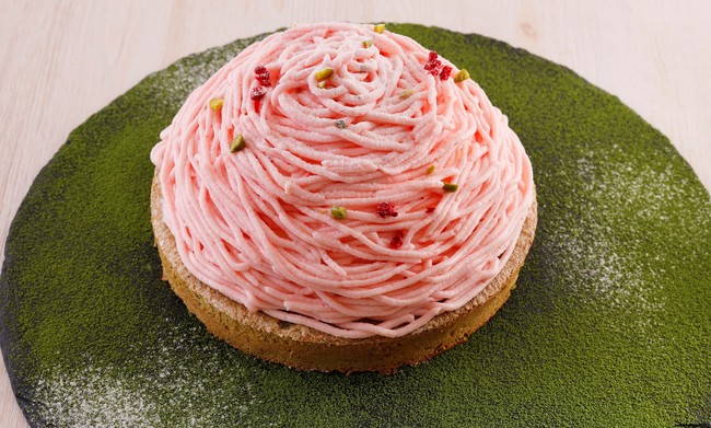 桜餡と抹茶生地を使った、春らしいモンブランケーキを作ります。
