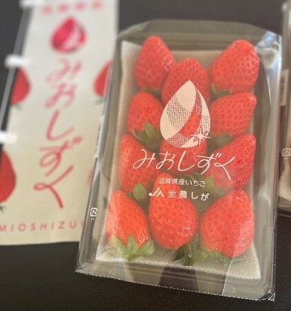 このイベントは、滋賀県初のオリジナルいちご「みおしずく」の本格デビューを記念したもので、地域の皆様に広くみおしずくの魅力を知っていただくために滋賀県園芸農産振興協議会が企画した試食・販売会です。