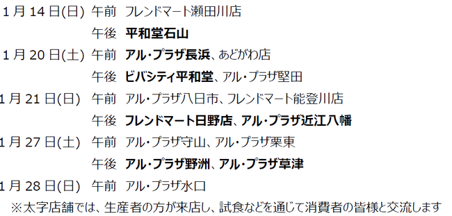 1月14日(日)より、滋賀県内の平和堂15店舗にて順次開催