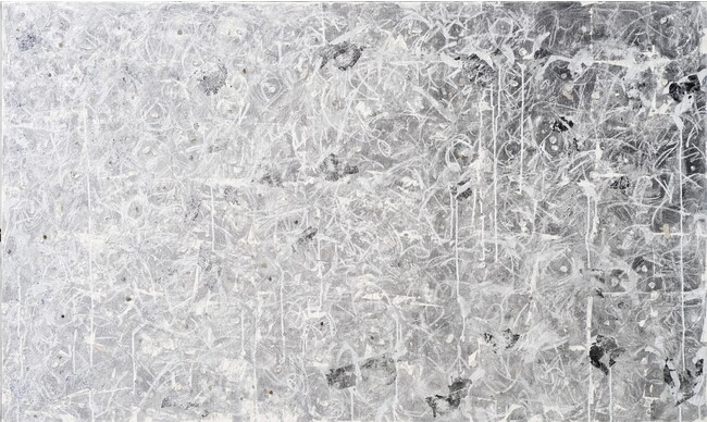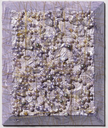 ‘Starry Night’ (2022) Pearl, silver leaf and oil on canvas 970mm x 1,620mm