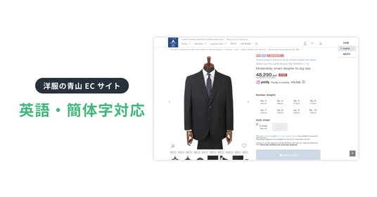 「洋服の青山」EC サイトを、WOVN.io で英語と簡体字に対応しております。