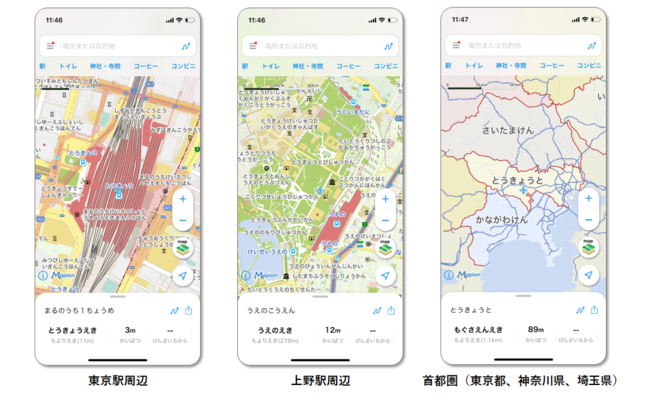 凸版印刷株式会社のグループ会社である株式会社ONE COMPATH(ワン・コンパス)が運営する地図アプリ「地図マピオン」(iOS版)は、地図上の文字表記がひらがなで表示される地図「ひらがなマップ」を10月6日より搭載しました。