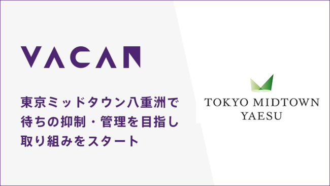 AI×IoTを活用してあらゆる「待つをなくす」スタートアップ、株式会社バカン(東京都千代田区、代表取締役:河野剛進、以下「バカン」)は、東京ミッドタウン八重洲(所在:東京都中央区八重洲)(3/10にグランドオープン)に、混雑抑制プラットフォーム「VACAN(バカン)」を導入します。今回、飲食店の混雑を施設内のデジタルサイネージ(電子看板)やウェブサイトへの配信機能や、待ち順管理を可能とするデジタル整理券機能などを提供します。これらのサービスを活用することで、店内の混雑検知・可視化から抑制、管理までを一気通貫で実現します。