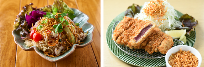 左:11階【サイアム セラドン】ヤムママ~ベビースターラーメンサラダ~(1点)900円