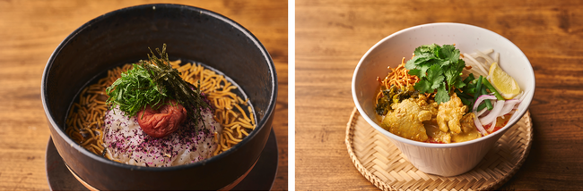 右:【グッドモーニングバンコク】ベビースターカレーフォー(1点)990円 ※イートイン