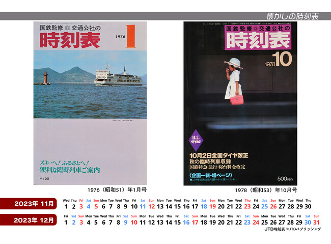 『懐かしの時刻表~カレンダー~』(単月パターンは全12種類、2ヵ月パターンは全6種類)